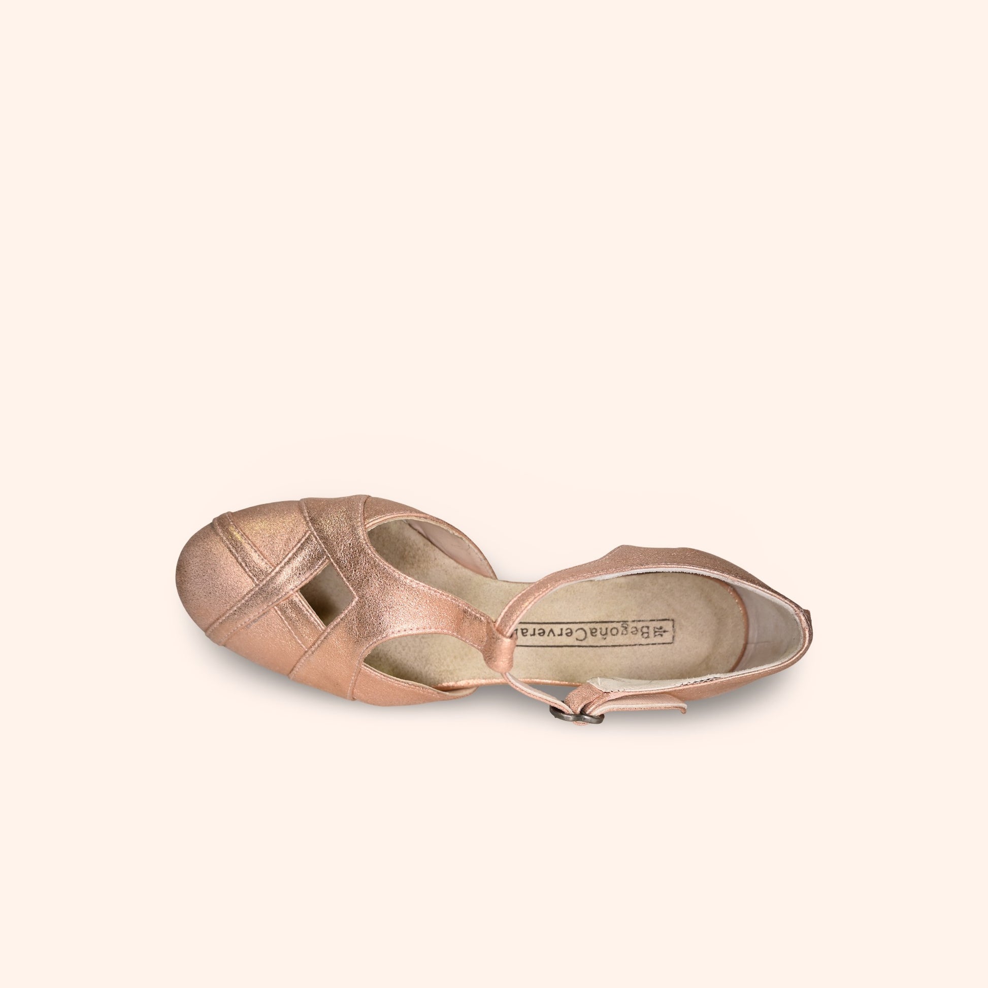 El zapato de baile Clásico Español V resalta la sensualidad femenina con un diseño inspirado en el icónico zapato salomé, que fue llevado por personalidades como Grace Kelly en los años 50. Este zapato está especialmente diseñado para bailar Swing, Balboa o Lindy gracias a la sujeción que el diseño ofrece al pie y su sistema cushion que amortigua la pisada al bailar.